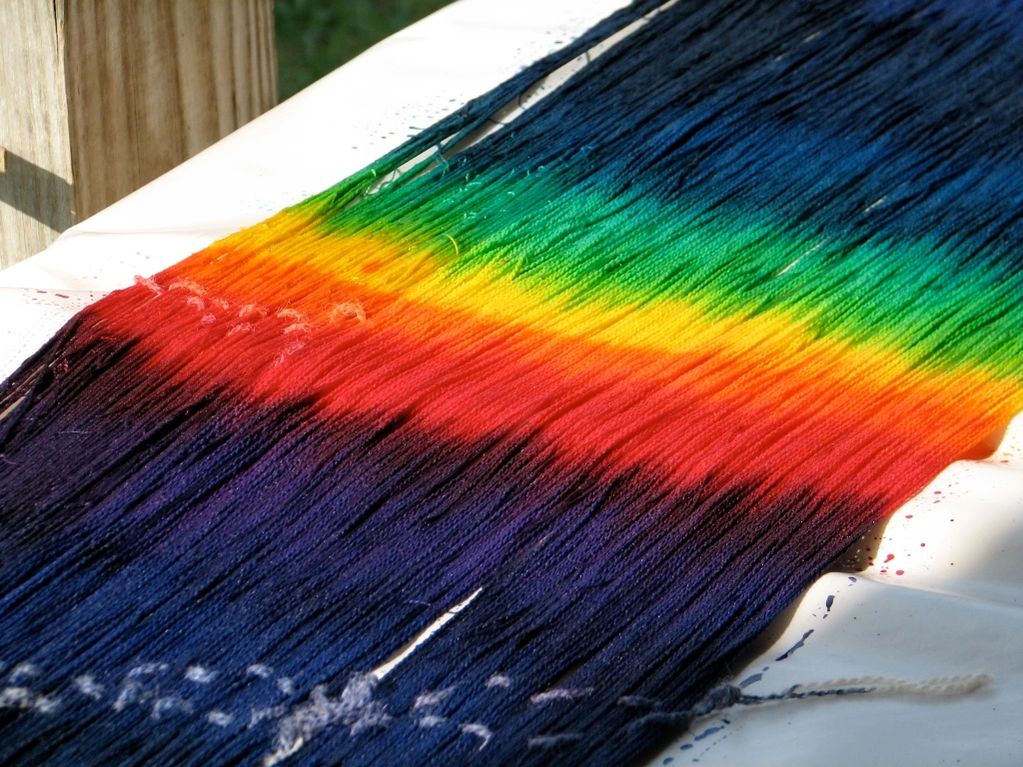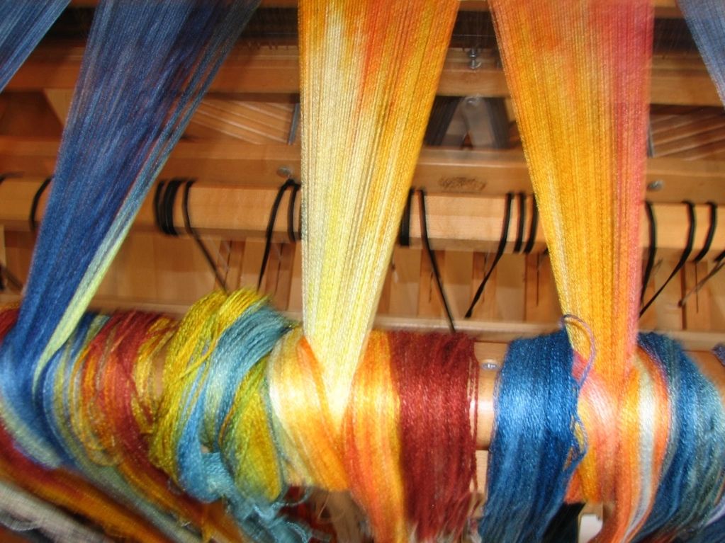 After the image or pattern is dyed-the yarns are covered with plastic and humidity set for 24 hours or longer at an air temperature of 70 degrees or higher. Finally the yarns are washed, dried and ready to "dress the loom."