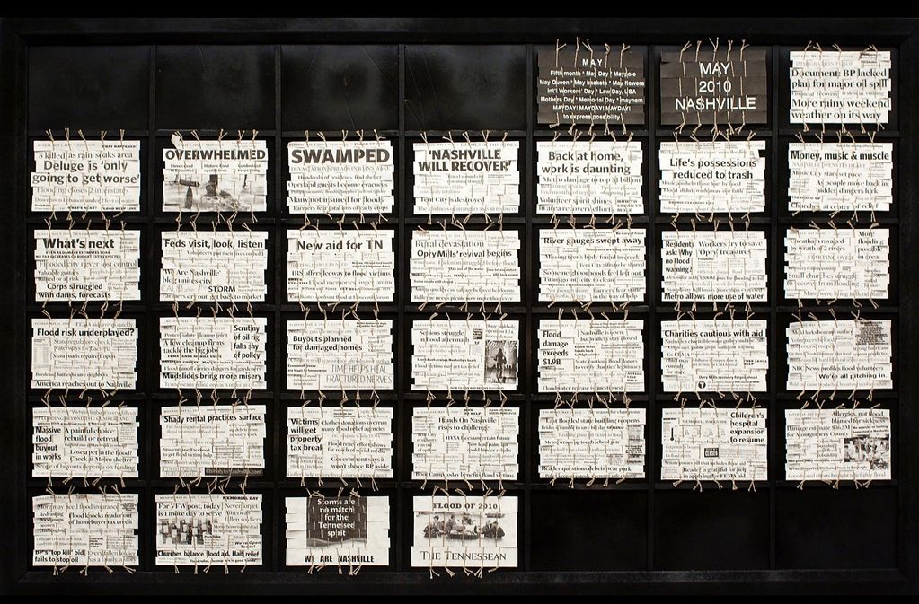 Mixed media weaving from the Tennessean Newspaper headlines during the Nashville Flood of 2010. This original piece is in the permanent collection of the TN State Museum. 26"x42"